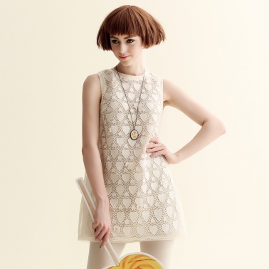夏装甜美爱心提花蕾丝连衣裙女 宽松欧根纱背心裙